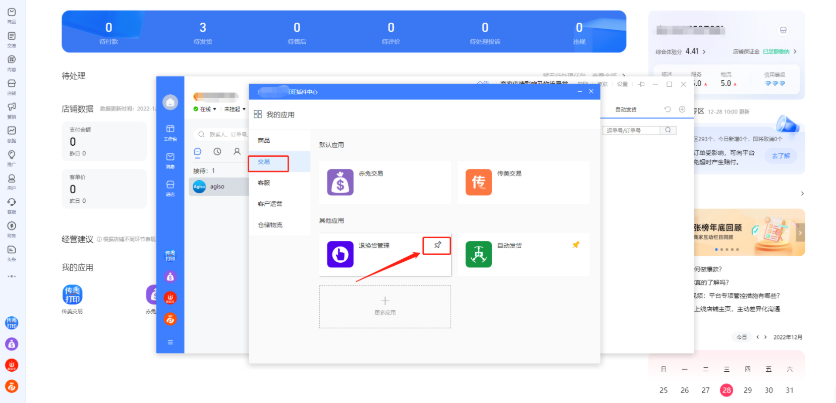 移除之后如图所示,自动发货在第二位或者第一位,注意请勿隐藏在更多里面