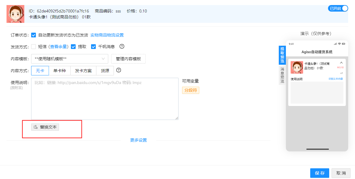 这个功能针对不同的店铺也同样适用,不同店铺,共用同一个91卡密仓库的。都可以使用同一个替换文本库