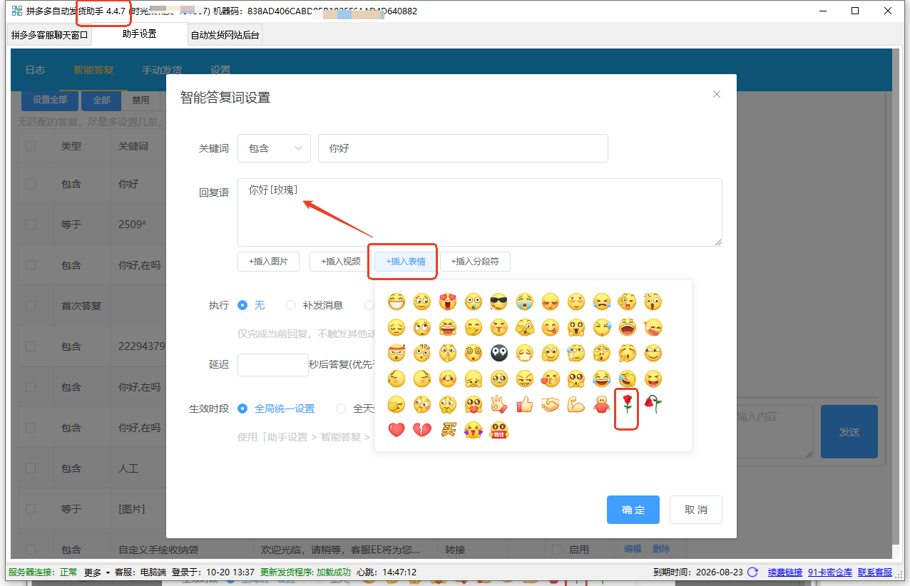 让智能答复更生动形象,设置表情为智能答复语来回复买家消息