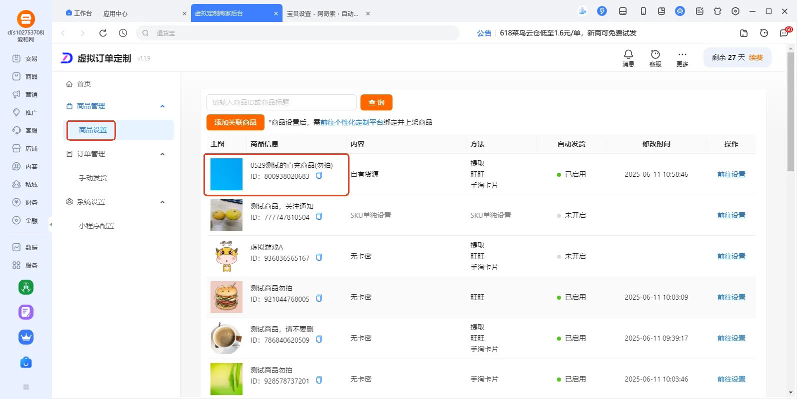 自动发货设置完成后,回到C2B后台,刷新后即可看到商品自动显示在商品商品列表里