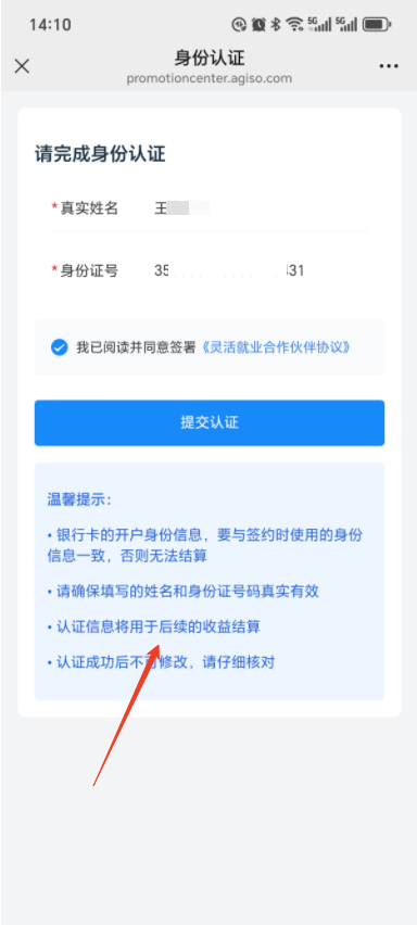- 注意身份信息真实有效,且确保与后续签约提现的信息一致