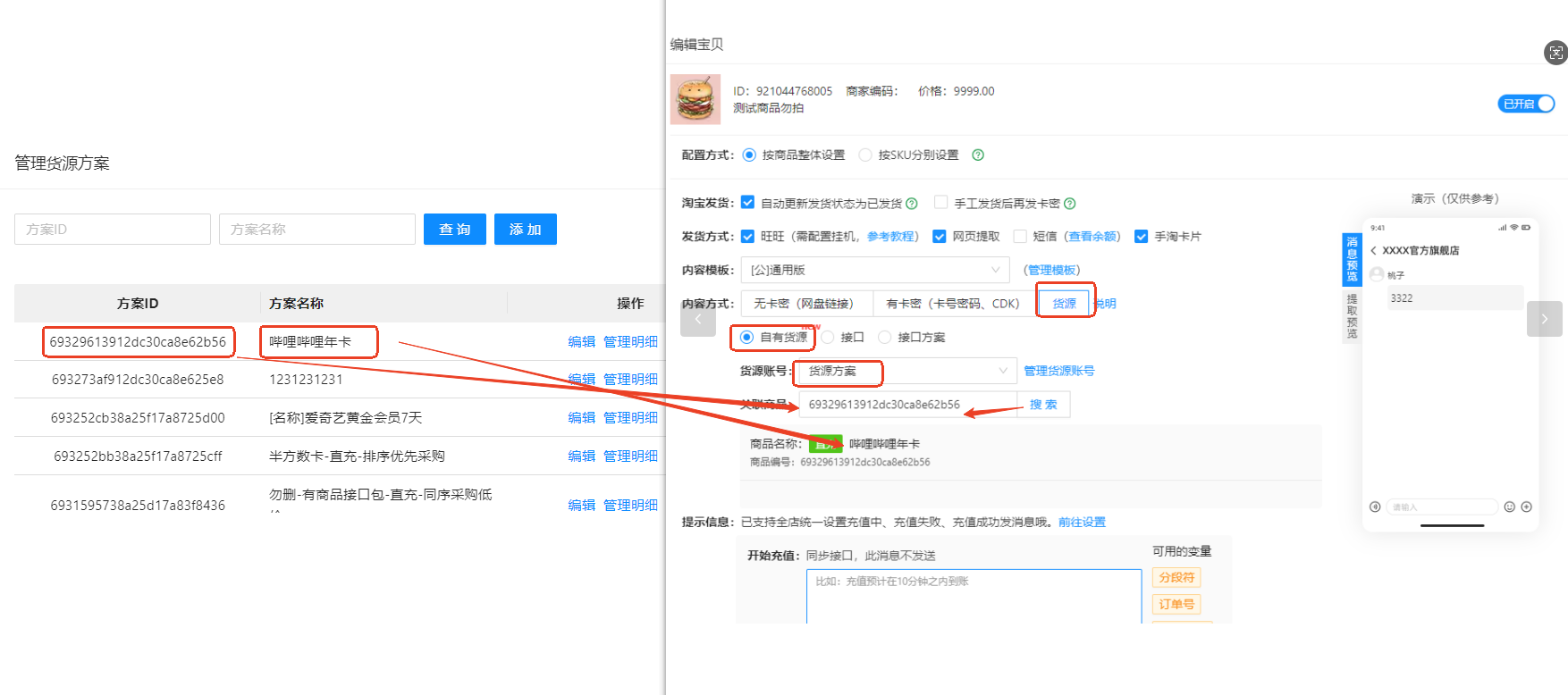 【关联商品ID,商品名称对应的是货源方案里的:方案ID,方案名称】