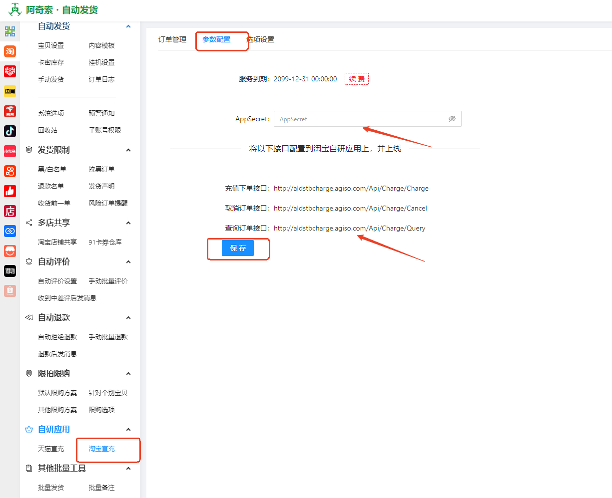 - 待小二下发生产密钥后,将密钥配置至阿奇索自动发货系统,完成后即可进行下单测试。