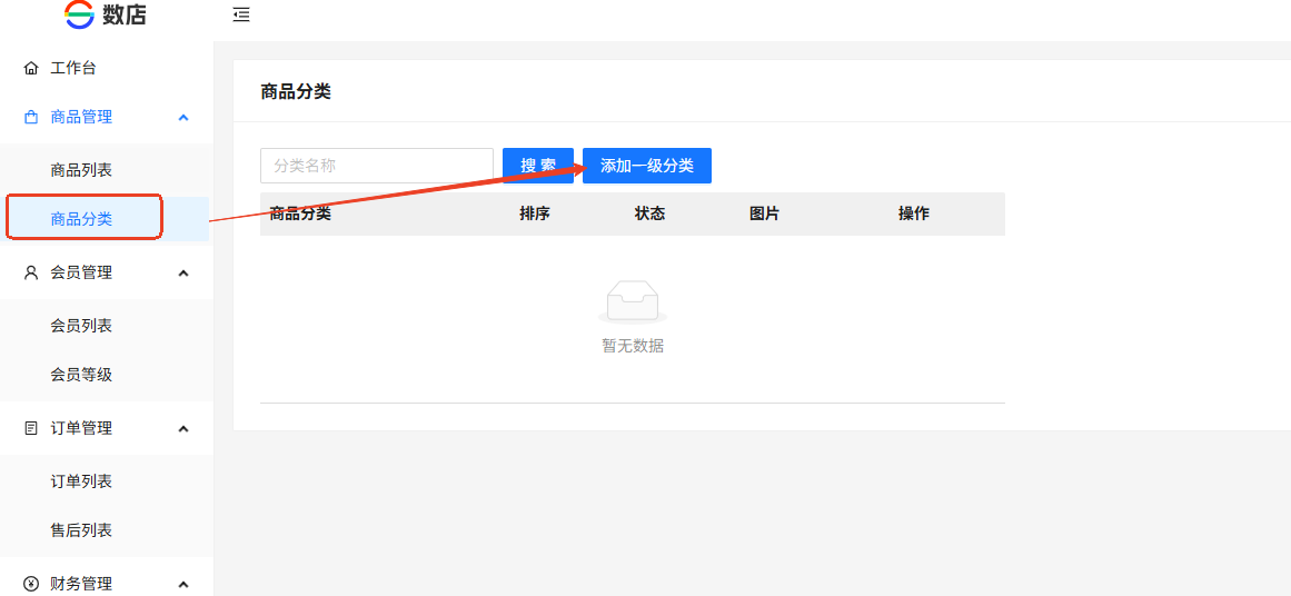 数店后台--商品分类--添加一级分类