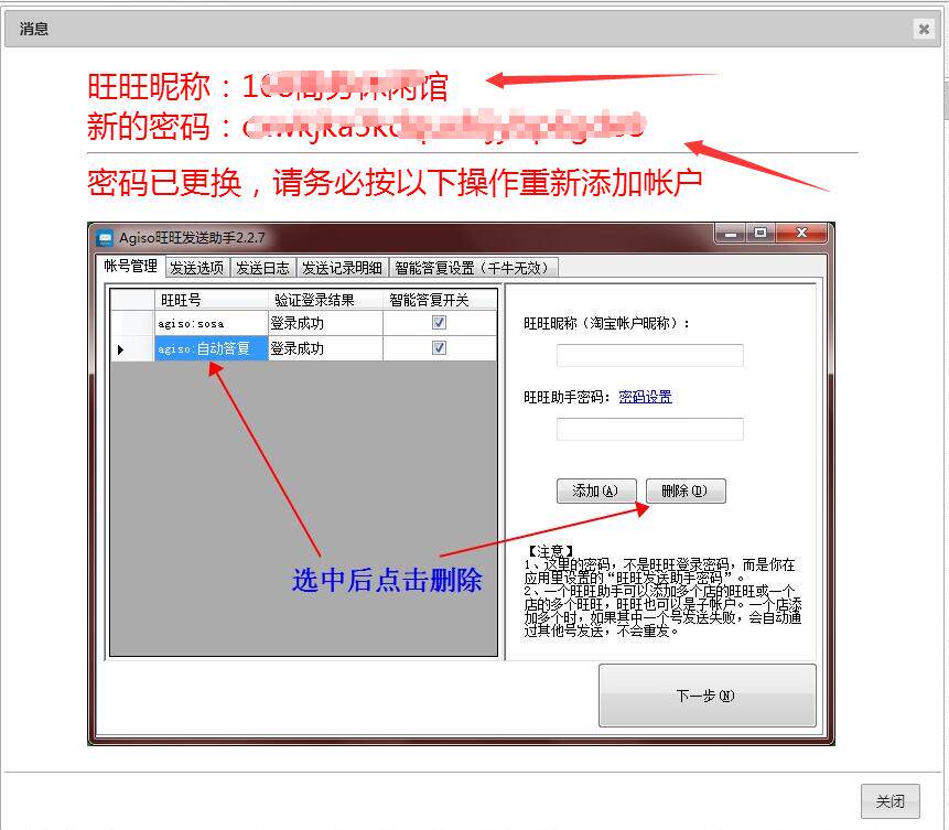 打开助手--删除原来添加的帐号--重新复制粘贴新的帐号密码