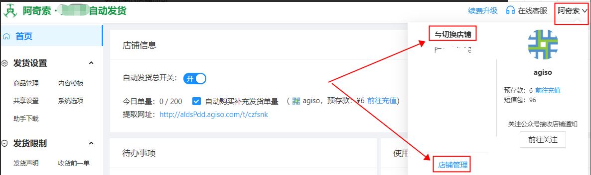 鼠标移至店铺名称上或点击店铺名称---切换店铺下会有显示已授权同一个91卡券仓库的所有店铺---点击需要切换的店铺即可