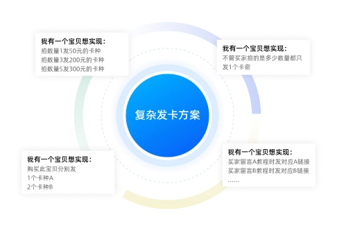 更智能化的设置,满足小众商家特殊场景需求。可实现按购买数量/留言/备注不同发对应不同的卡券库/发不同的文字内容